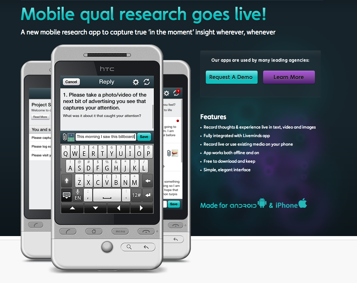 About a year and a half ago, I got obsessed with an idea for a mobile ethnography app (iResearch?) that I sketched out and explored the feasibility of getting developed. I eventually decided it was a bad idea which would cost £5000-£15000 to develop. This was probably for the best. I’m certain a thousand other people had the idea and the odds of me losing a load of money which I didn’t have were far too great.