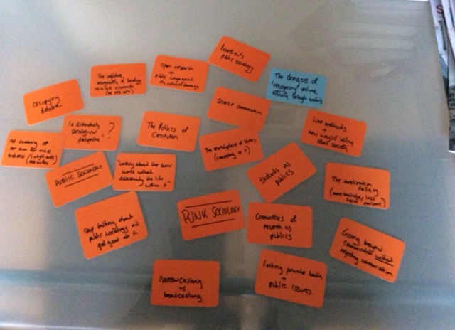 I’m already finding them immensely useful. In the cards below are the talk I’m giving at the Digital Sociology conference in New York in a couple of weeks. I recorded everything I wanted to say on its own individual card. I’m now going to arrange them in order to draw out clusters, perhaps discard a few and then write the talk using these cards as prompts. In this sense, it allows me to organise my ideas in a more systematic way without sacrificing the writing-to-see-what-happens approach which I prefer. I’m sure some of the prompts will be discarded, others will be rethought and all of them will exceed the limits of what I placed on the card itself.