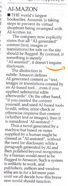 From this week’s Private Eye. It’s interesting to see how the murky grey area between human text and synthetic text is where policy is being made, contrary to the initial moral panic about the former being replaced by the latter: