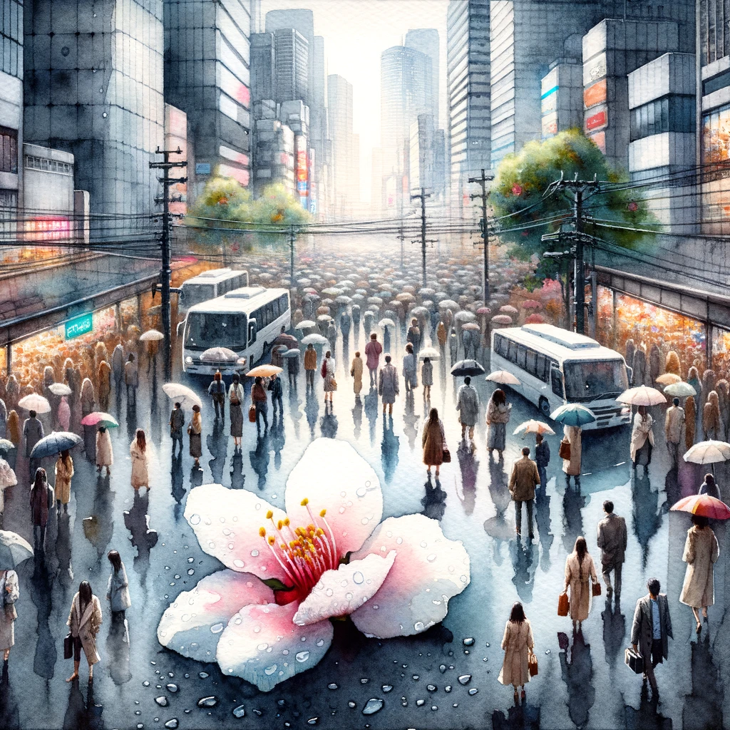 In a Station of the Metro The apparition of these faces in the crowd; Petals on a wet, black bough. - Ezra Pound
