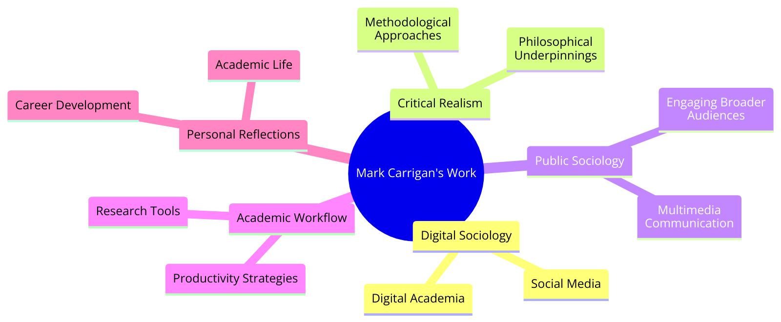 This is its surprisingly great response to the brief request ‘draw me a diagram illustrating the main themes from Mark Carrigan’s work’: