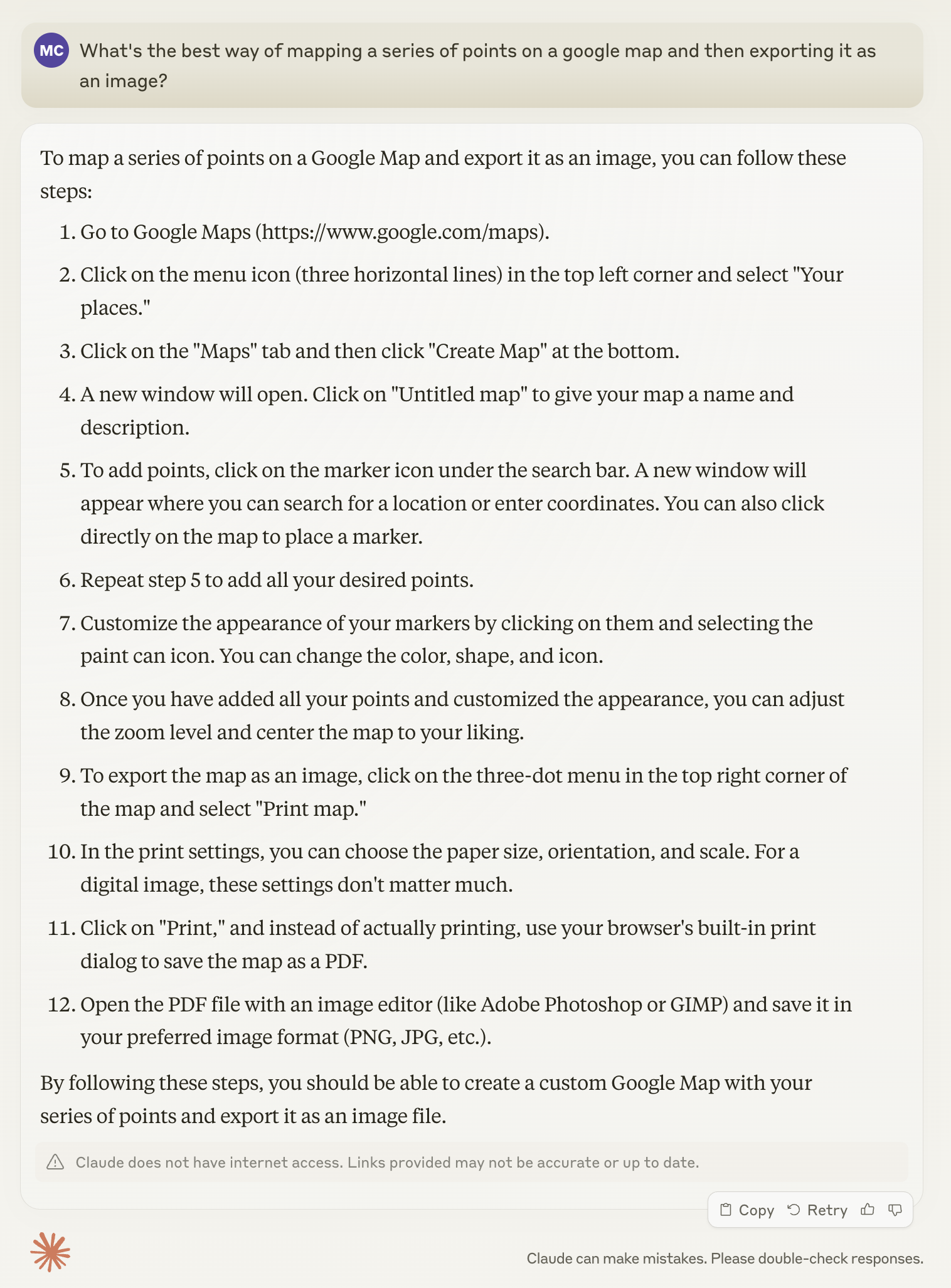 This rapidly became my go-to (first) route for finding out how to do something. Sharing these examples here, from the last hour, in case it gives readers ideas about how they might do the same thing: