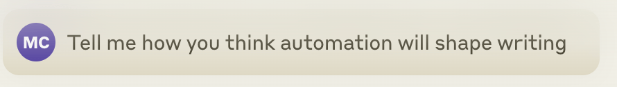 There are lots of ways in which generative AI is going to change writing. I’m worried about how people will become writers under these conditions, particularly how they will develop their own voice. But if you’re already a writer you are well equipped to thrive with these systems. The intrinsic motivation is not an indulgent residue to keep yourself amused once AI has stolen your job. It’s integral to the literacy which enables you to work effectively with conversational agents in the first place. The cultural capital of writers (particularly, weirdly, bloggers) leaves them incredibly well placed to use these systems. Claude got quite enthusiastic about this idea👇